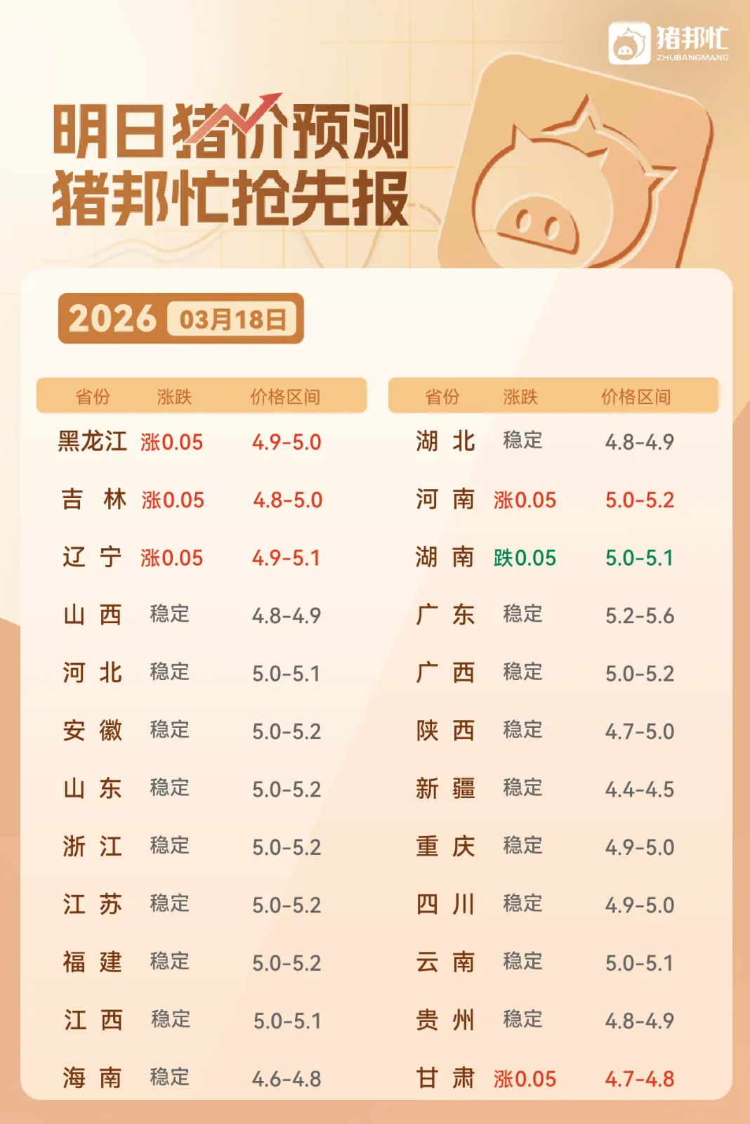 【明日猪价】2026.03.18:北方上涨!