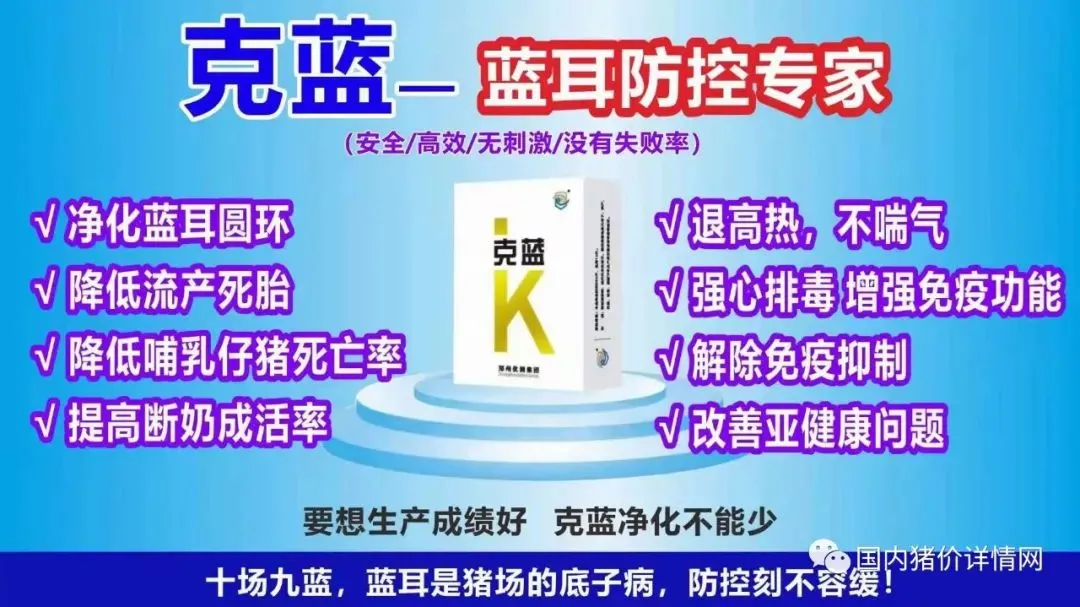 克蓝从去年3月分一直在用,母猪流产死胎这种情况没有了 在今日最新猪价网上看到的广告 ~666