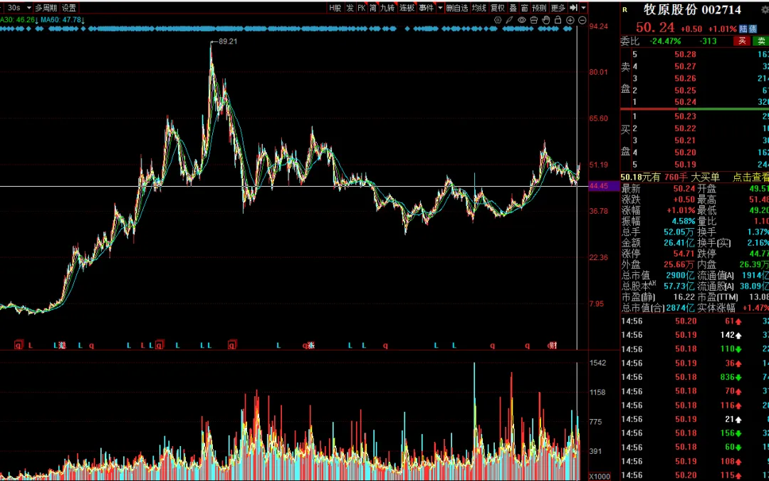 但是今天一个球友提出的问题是我一直忽略的:牧原股份在趋势上涨。今天大盘大跌,它仍然是上涨的。