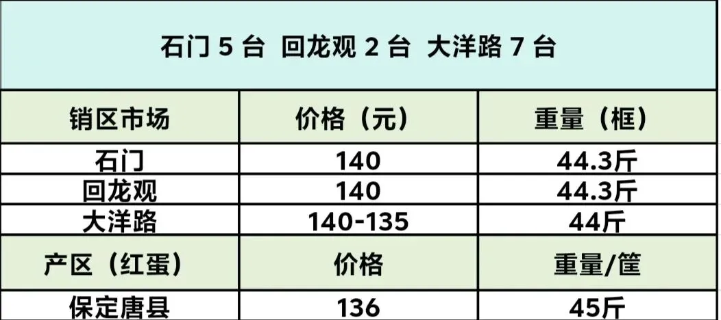 大洋路鸡蛋价格2026年 3 月 17 日报价 养羊网 2026-03-17 大洋路鸡蛋价格2026年 3 月 17 日报价大洋路到 7 台,价格 140-135 元,截止中午没有剩车,明天回 2-3 台附近。 养羊网 2026-03-17 上一篇:【明天猪价】 2026. 03. 18 全国猪价! 下一篇:【3月18日】毛鸡、鸡苗、鸡蛋价格预报 您可能还会对下面的文章感兴趣111: 相关文章 【超前猪价】2月26日(猪价“突变”,雷霆大变!未来三天,猪价大爆发!) 2026年1月8日馆陶金凤市场鸡蛋价格 建议今天可以关注 三招教你卖猪不当冤大头!