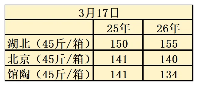 2026年3月17日鸡蛋价格分析 养羊网 2026-03-17 2026年3月17日鸡蛋价格分析 养羊网 2026-03-17 上一篇:2026.3.18 --猪价 下一篇:猪价跌破10元大关,饲料却暴涨!养一头猪亏300元,养殖户含泪淘汰母猪! 您可能还会对下面的文章感兴趣111: 相关文章 近期价格更新!!! ?周末烤全羊篝火晚会约起 近期价格更新!!! 2025年4月13日全国各地生猪价格信息