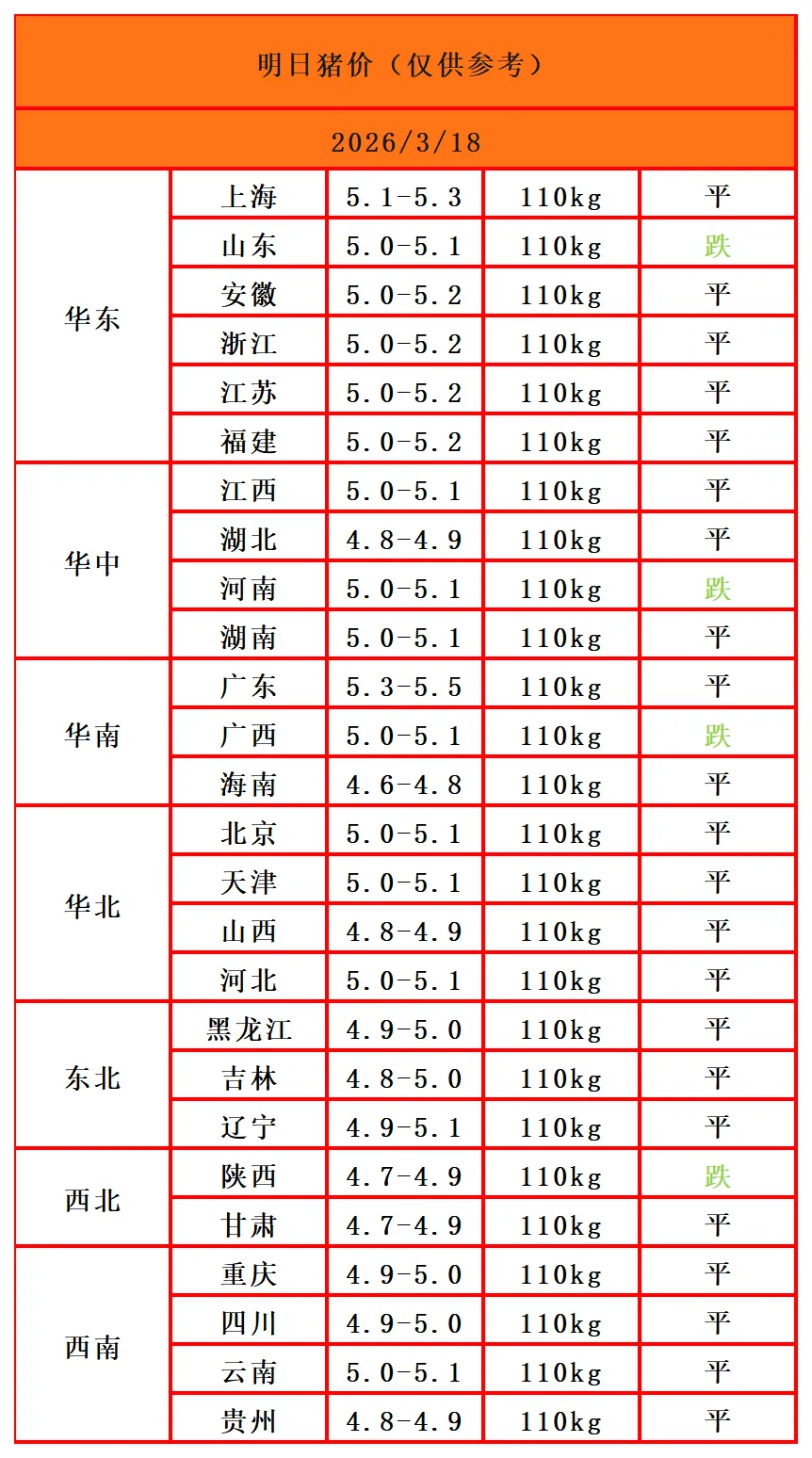 【明日猪价】跌涨调整,大部稳住!