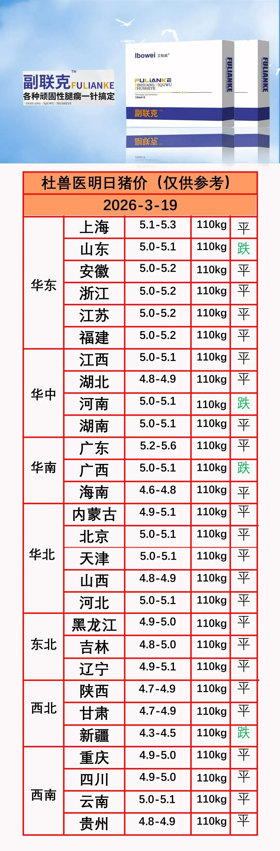 各位养猪的朋友们,大家好!今天是2026年3月19日,星期三。杜鲁医用为您带来最新的全国生猪价格参考。