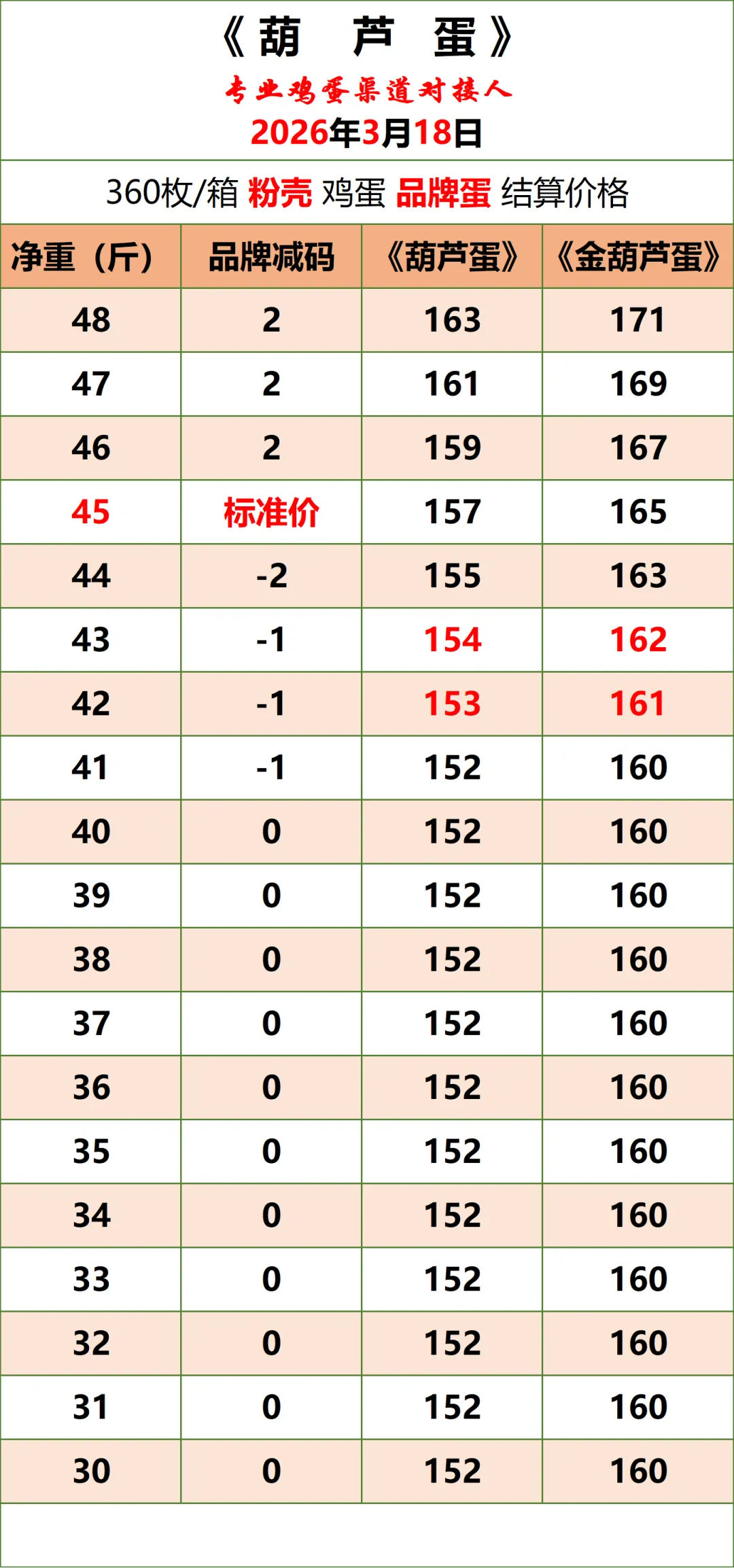 1、以上价格为《葫芦蛋》平台公示的鸡蛋含包装成交结算价(上车价),仅供与本平台渠道对接伙伴参考使用,不与其他任何报价作比较。