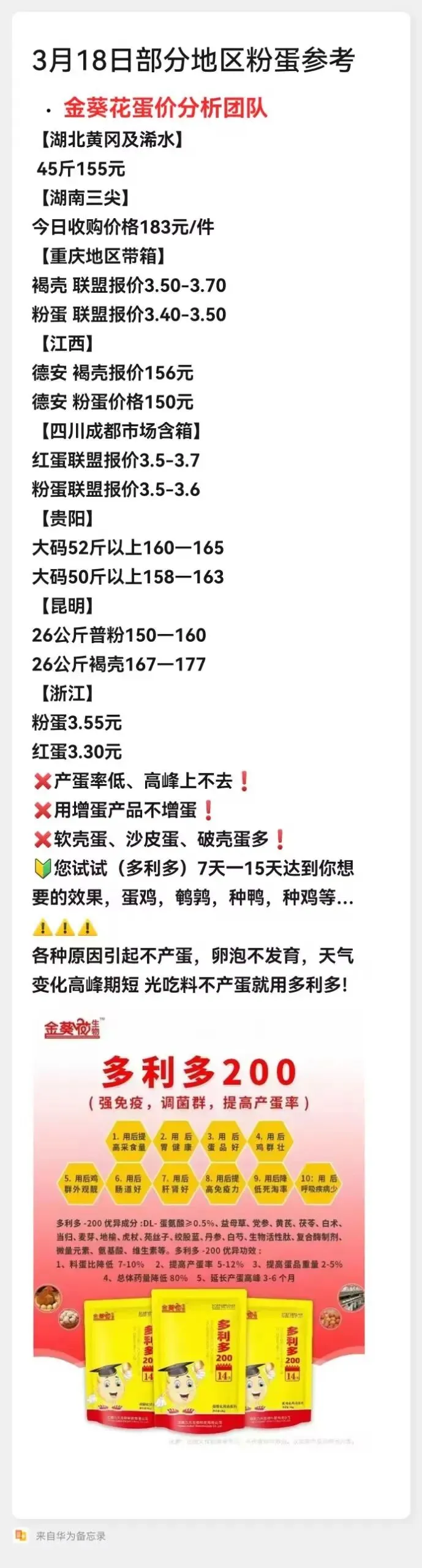 【多利多200】内补气血,滋养卵巢,强肝护肾,调理肠道,全面提升鸡群产蛋性能。蛋壳差、蛋率低、蛋重小、高峰短,料蛋比高,全部搞定。不用再额外添加(多维、鱼肝油、益生菌、增蛋药、保肝护肾产品),肠炎和输卵管炎减少80%以上。