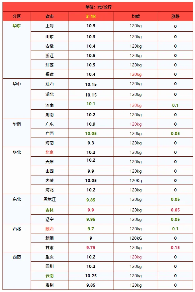 据博亚和讯监测,3月17日,全国外三元生猪均价为10.12元/kg,较昨日微跌0.01元/kg,市场整体呈现涨跌两难的僵持状态。