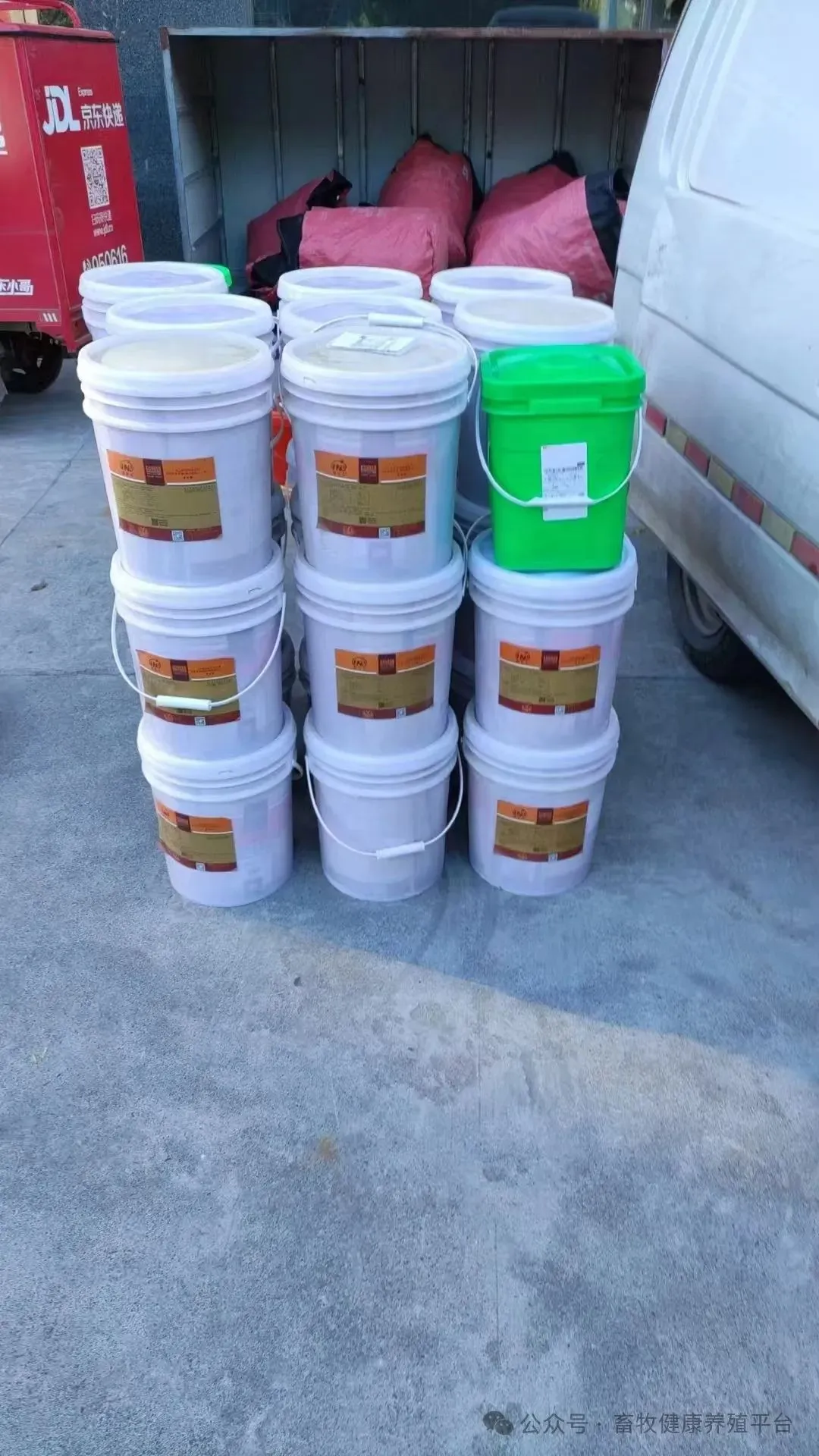 丰尤壮是桶装的,一桶是10袋,1袋是1公斤,一袋拌料1000斤!
