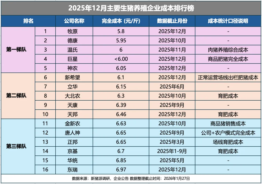养殖完全成本 | ≤6.00元/斤(12元/公斤) | 基于21家上市猪企成本数据,前4名企业成本均在6.00元/斤及以下 |