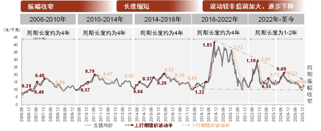 从当前的产能状况来看,2025年7月至今,生猪养殖行业再次步入去产能阶段,截至2025年12月,产能累计降幅2%。2025年12月末全国能繁母猪存栏量3961万头。即便产能有所去化,但生产效率的提升也会抵消去化的部分效果,即便乐观的看猪价,至少也要2026年第四季度才可能迎来猪价上涨周期。