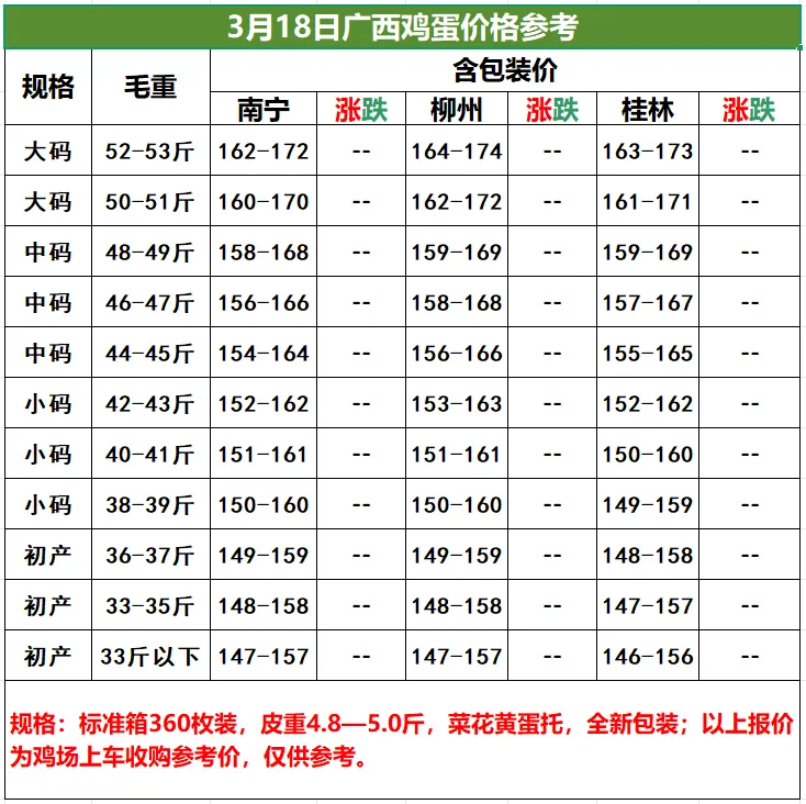 3月18日桂林、柳州、南宁鸡蛋价格参考