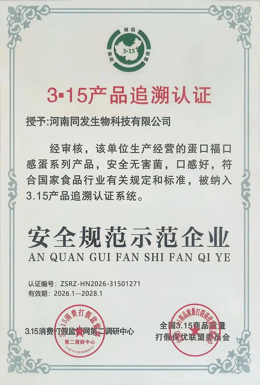 315产品追溯认证