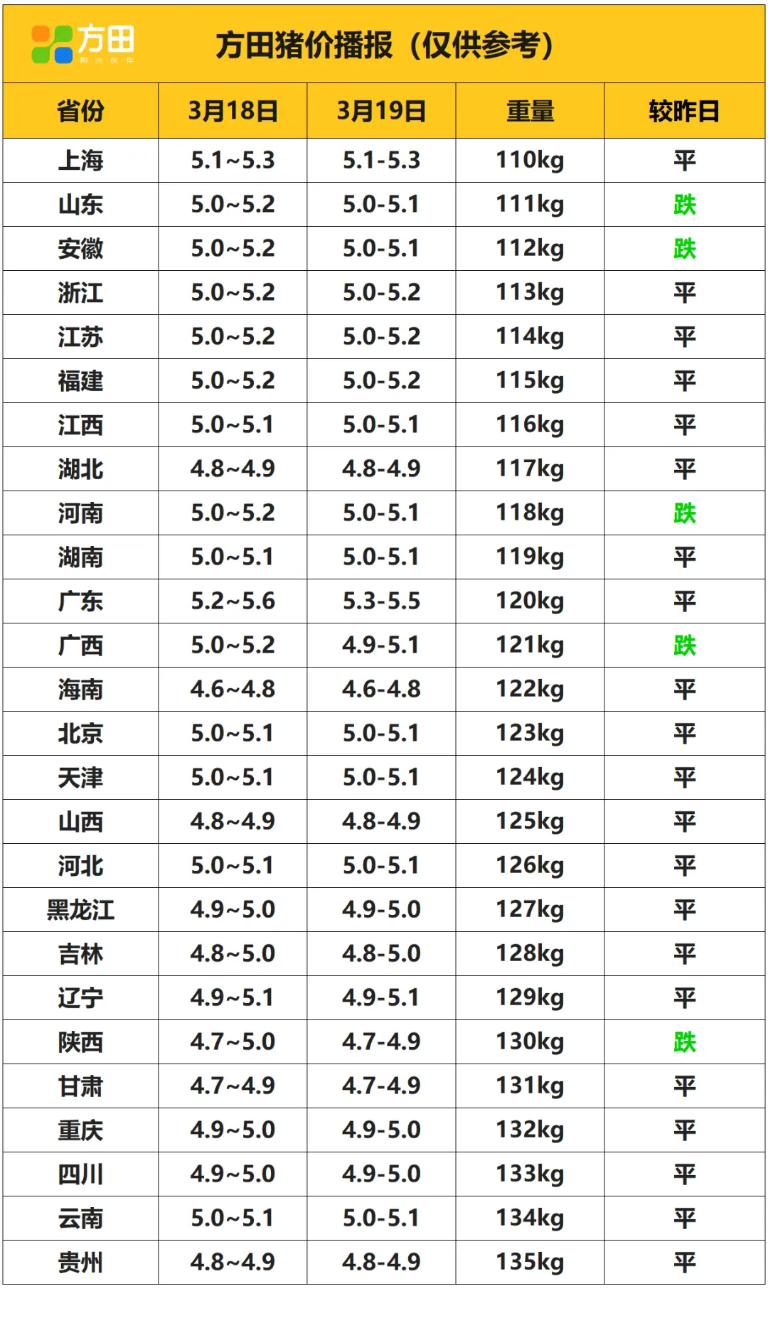 猪价丨3月19日 明日猪价早知道 养羊网 2026-03-18 猪价丨3月19日 明日猪价早知道 养羊网 2026-03-18 上一篇:猪价呈现稳中偏弱,全国均价破五了!! 下一篇:猪价跌至10元关口全行业深度亏损 您可能还会对下面的文章感兴趣111: 相关文章 3月出栏计划增幅较大 猪价存在下行压力 【猪价大预测】2月21日~2月24日!全国猪价! 我的大学同学,手底下只有两个员工,全年却 2025年4月13日全国各地生猪价格信息