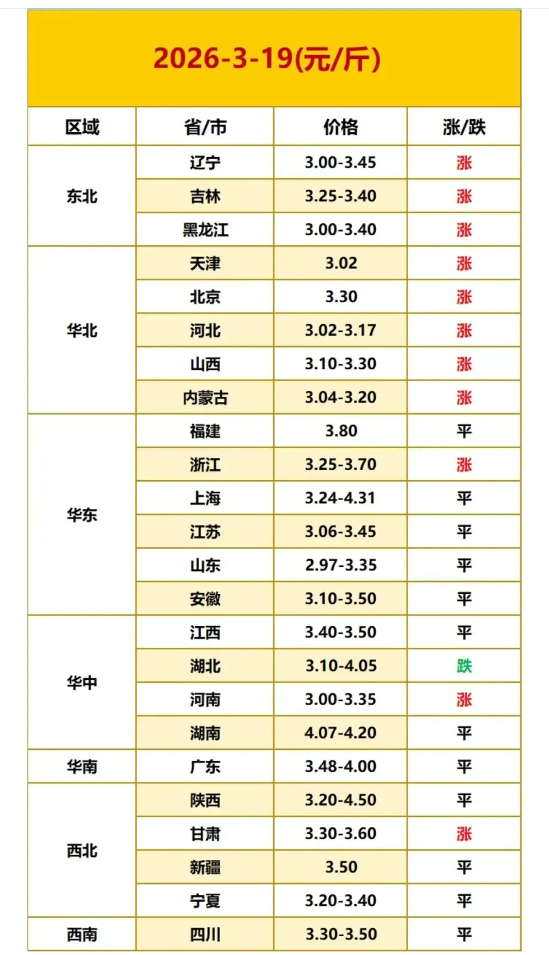 2026年3月19日全国鸡蛋价格最新走势 ? ? ? 全国鸡蛋最新价格参考:
