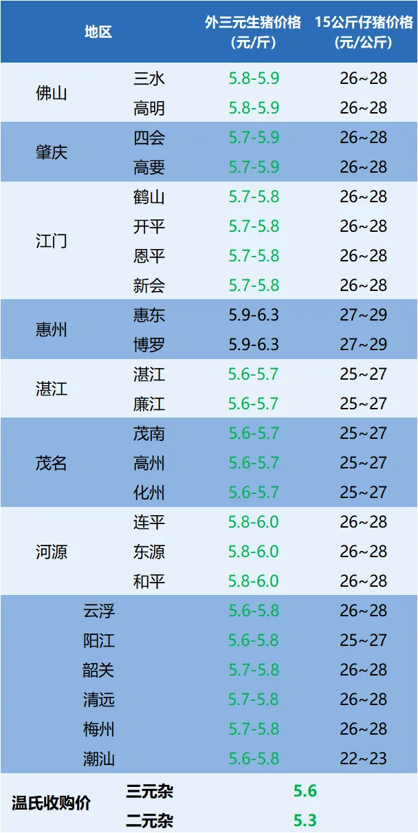 今日广东省外三元、15公斤仔猪价格
