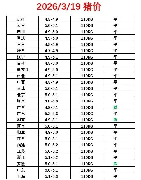 2026.3.19猪价出来了 养羊网 2026-03-18 2026.3.19猪价出来了 养羊网 2026-03-18 上一篇:2026.3.19 猪价 下一篇:2026.3.19 --猪价 您可能还会对下面的文章感兴趣111: 相关文章 【悦丰饲料】2026年1月27日猪价播报 2026.2.10-明日猪价(多地企稳上涨!) 2025年4月13日全国各地生猪价格信息 3月3日贵州鸡蛋价格