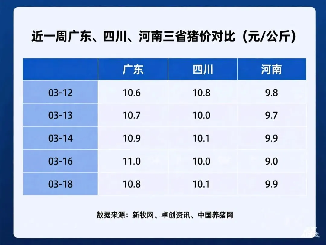 贴一下近一周广东,四川,河南三个产猪大省的猪价。 这猪价走势,精准地勾勒出当前生猪市场的残酷现实:广东独木难支,四川震荡磨底,河南跌入深渊。这种区域分化不仅是地理距离的体现,更是养殖端与消费端激烈博弈的结果。