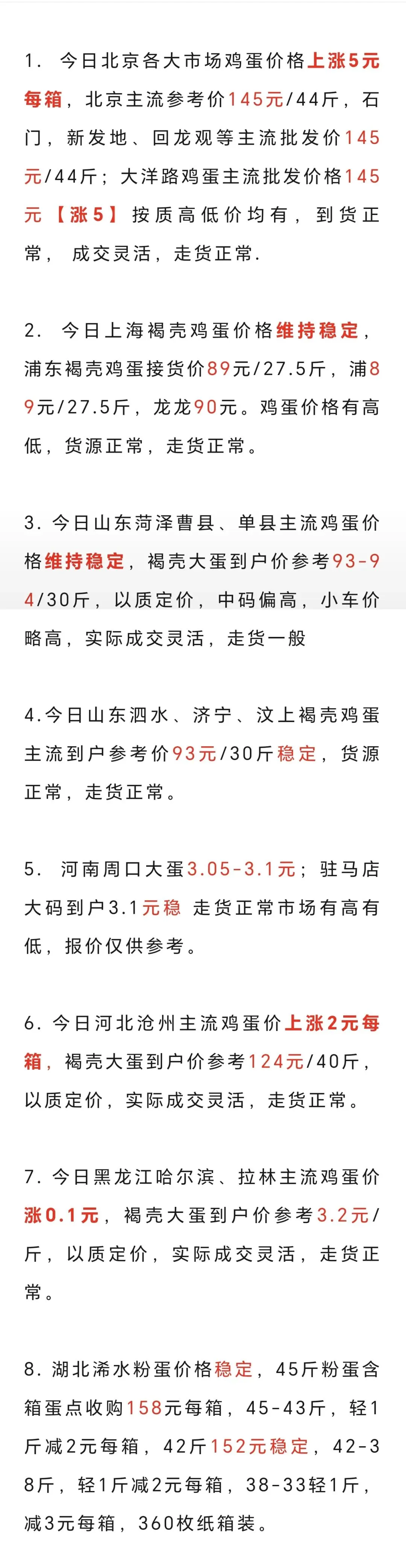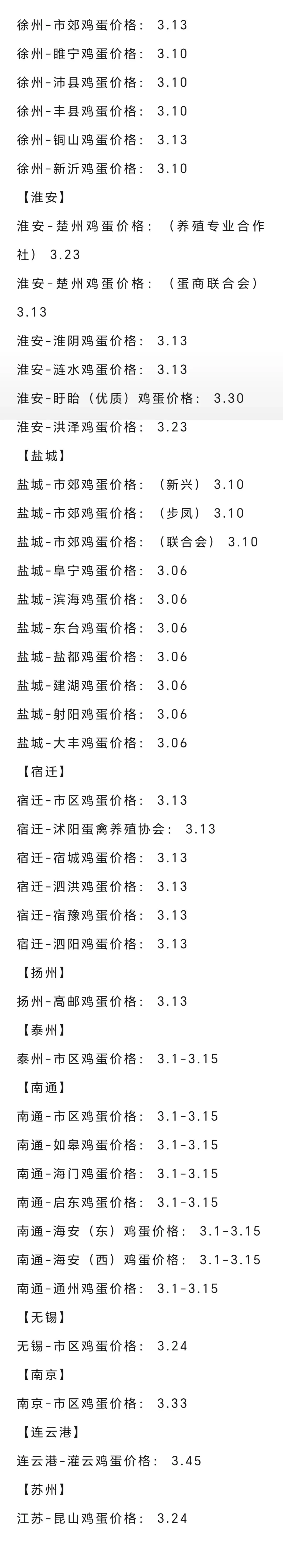 2026年3月19日各地鸡蛋价格 养羊网 2026-03-19 2026年3月19日各地鸡蛋价格 养羊网 2026-03-19 上一篇:3月19日昆明鸡蛋价格参考,云南鸡蛋价格参考; 下一篇:【一箱蛋】3.19-全国鸡蛋价格与供求信息!(震荡盘整 ,走货正常!) 您可能还会对下面的文章感兴趣111: 相关文章 2025年4月13日全国各地生猪价格信息 8块钱买了18个鸡蛋 【猪价早报】2026. 1 . 21 一夜降温!猪价下跌卷土重来! 2025年4月13日全国各地生猪价格信息