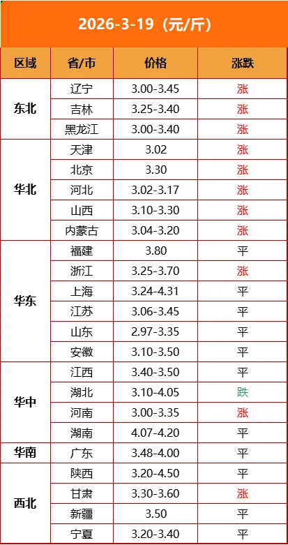 今日鸡蛋价格行情(2026年03月19日)