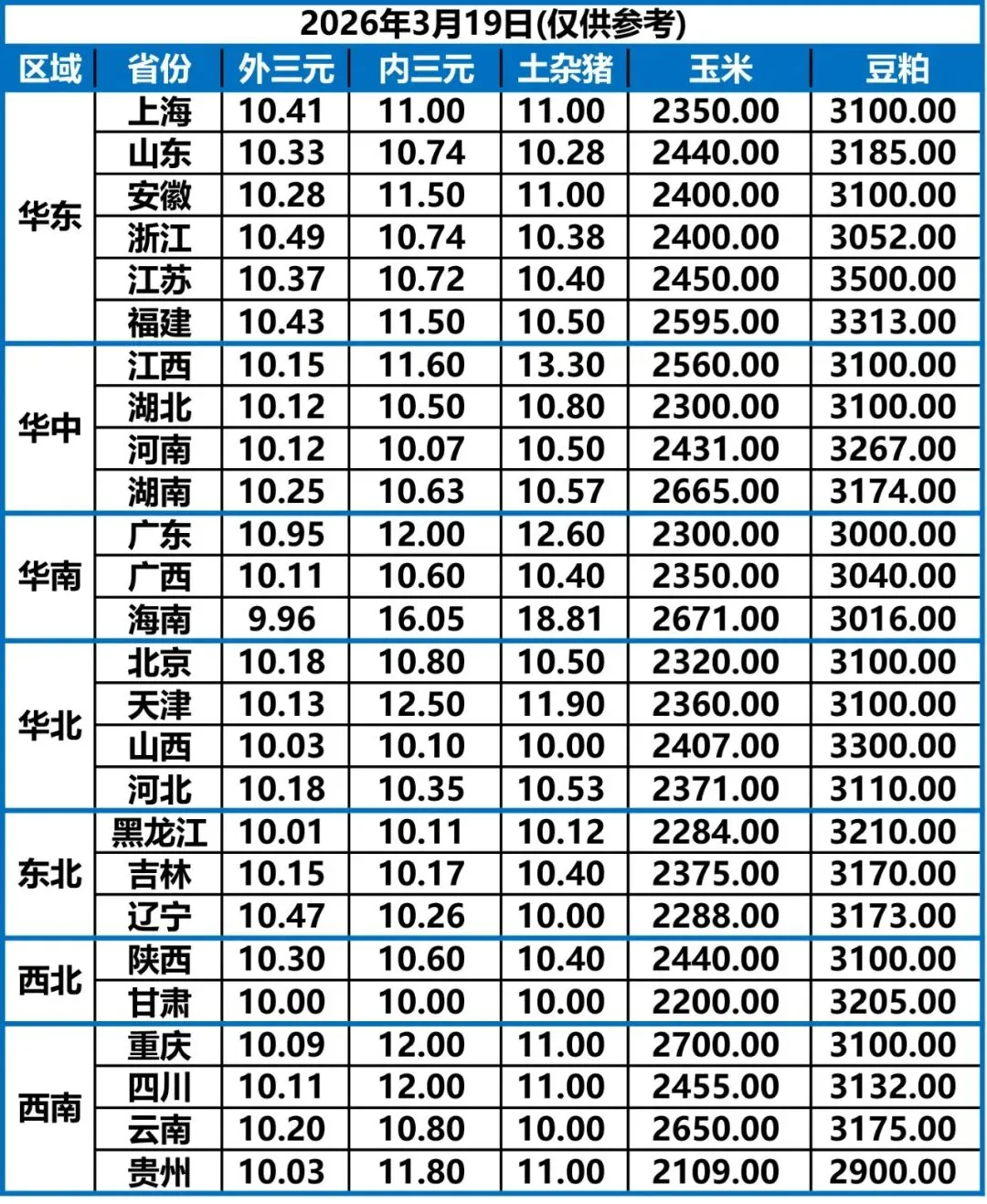 3月19日 | 正业生物猪价快报!
