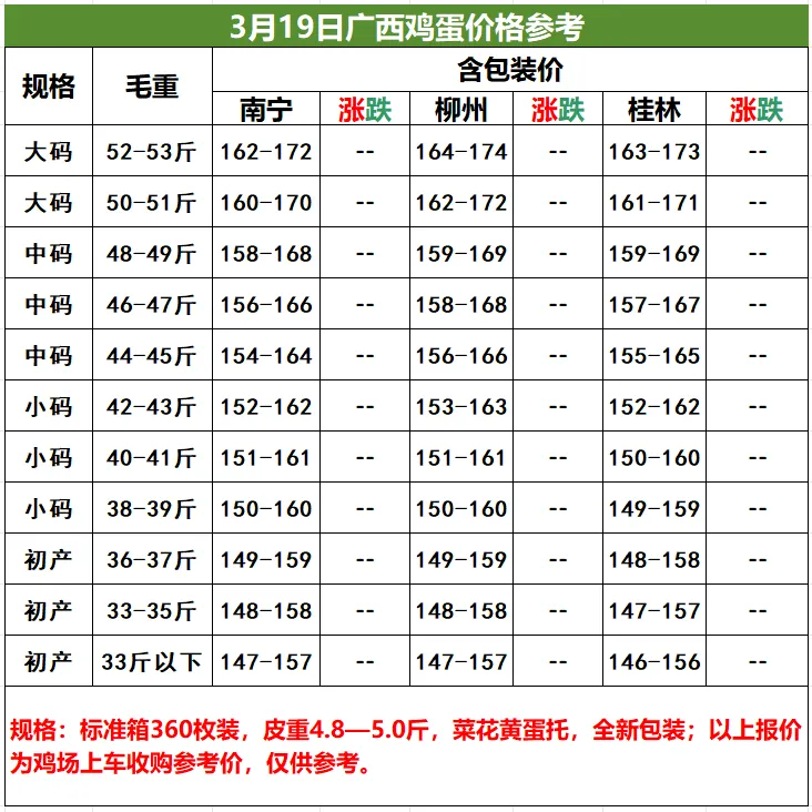 3月19日桂林、柳州、南宁鸡蛋价格参考,稳