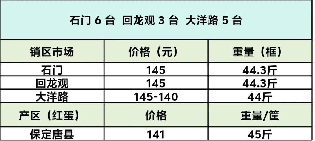 大洋路鸡蛋价格2026年 3 月 19 日报价 养羊网 2026-03-19 大洋路鸡蛋价格2026年 3 月 19 日报价大洋路 5 台,价格 145-140 元,走货一般,没有剩车,明天回车少 2-3 台附近。 养羊网 2026-03-19 上一篇:2026年3月19日《葫芦蛋》鸡蛋价格 下一篇:2026年3月19日上海及周边地区鸡蛋价格 您可能还会对下面的文章感兴趣111: 相关文章 山姆黑猪腿肉?,价格还算美丽 2026.3.11-鸡蛋价格 牛肉现在都多少钱一斤? 养殖设备一站式采购:养猪场热镀锌料塔