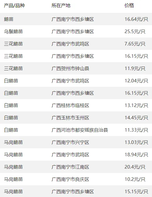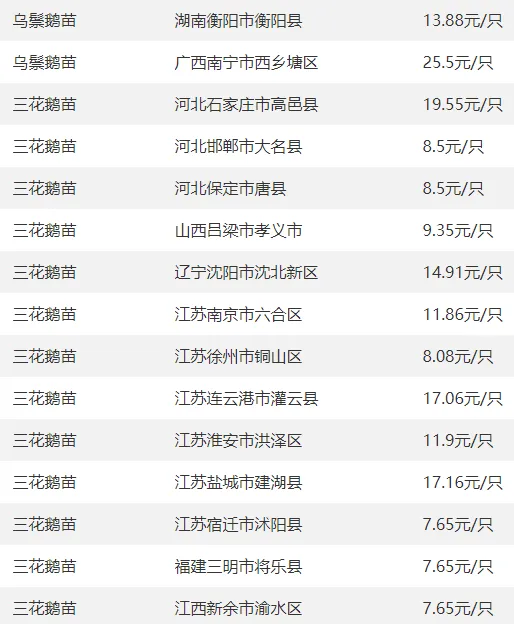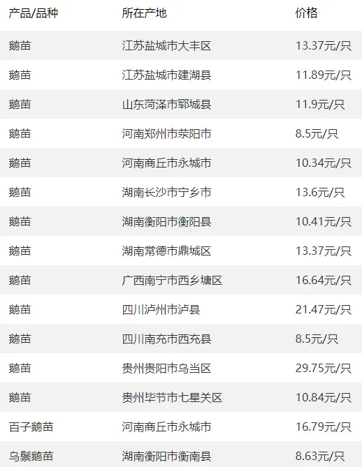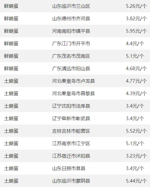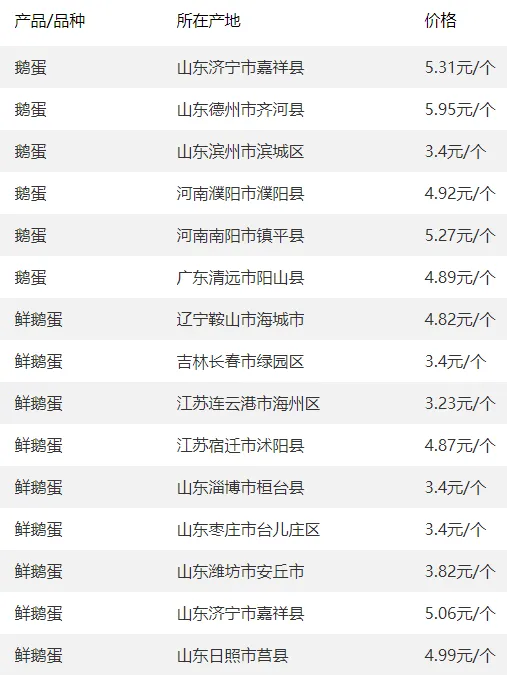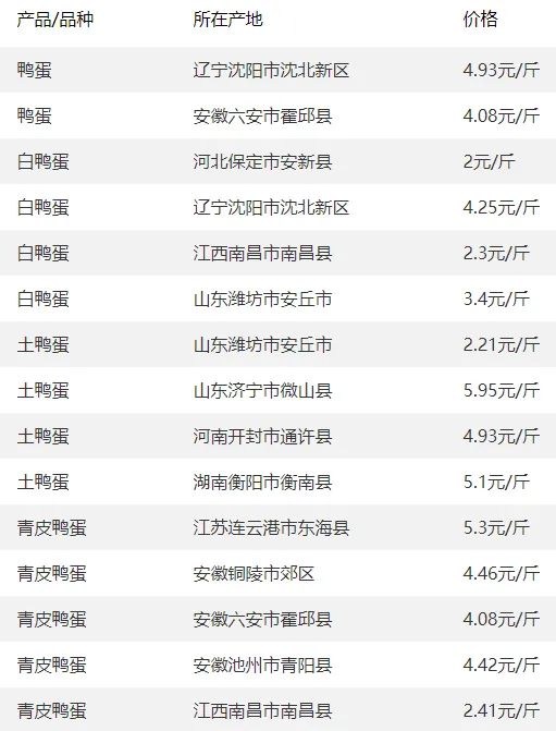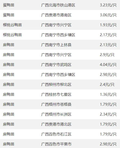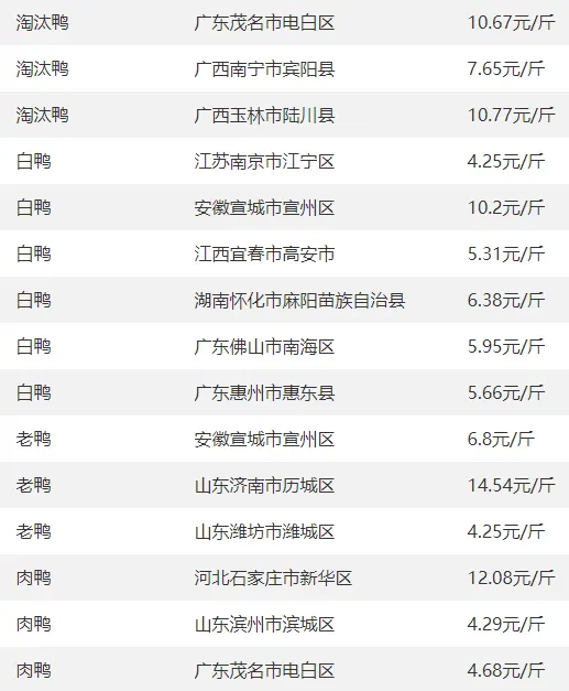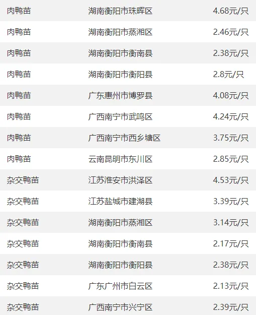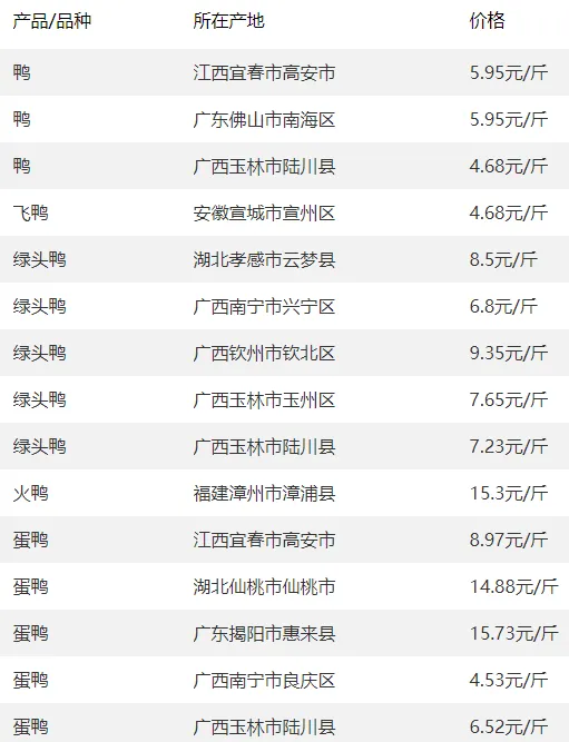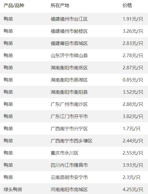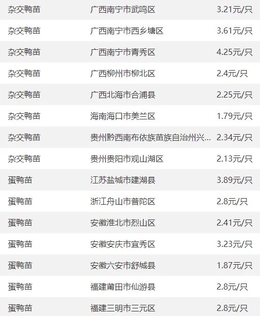 活鸭、鸭苗、鸭蛋、鹅苗等今日报价参考