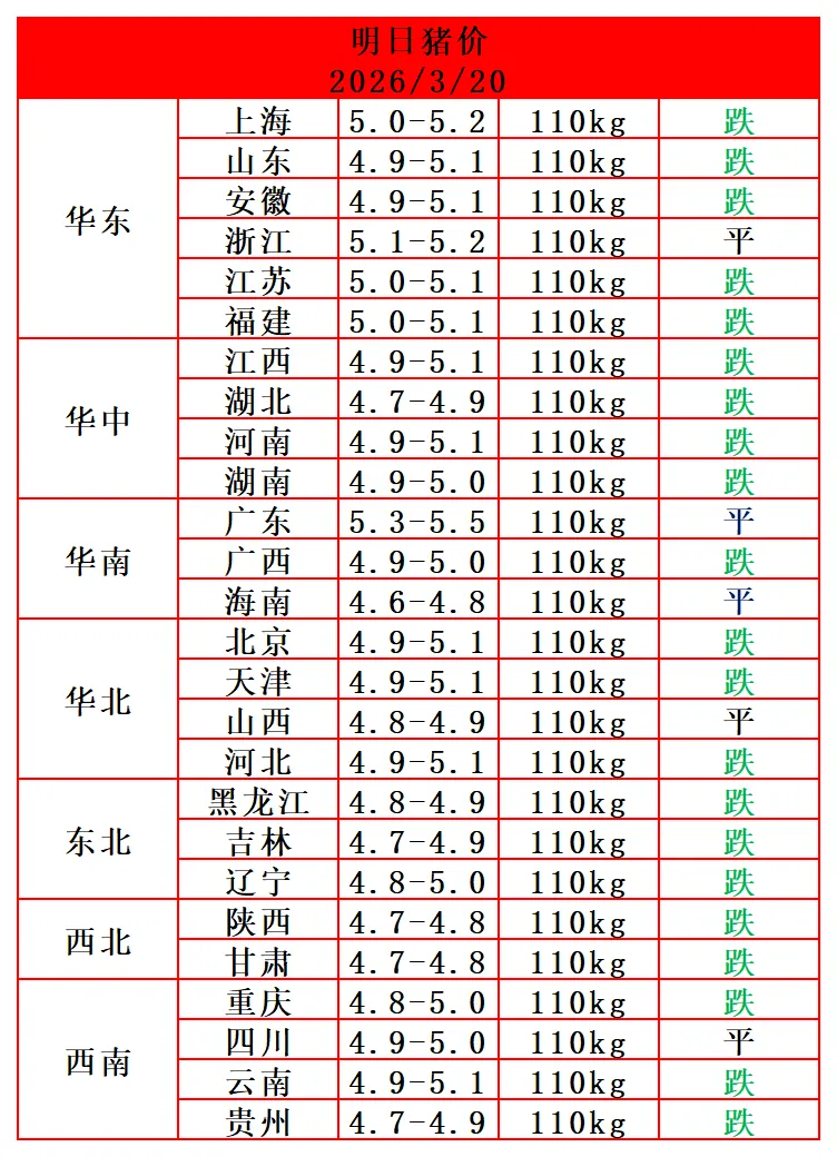 猪价低位!2026.03.20鼎王猪价播报早知道! 养羊网 2026-03-19 猪价低位!2026.03.20鼎王猪价播报早知道!立马收到明天最新猪价鼎王金猪就是长得快!订购电话:13980400130 养羊网 2026-03-19 上一篇:3月19号 最新鸡蛋价格速查 下一篇:猪价四块多26.03.19 您可能还会对下面的文章感兴趣111: 相关文章 我勒个去……盒马鸡蛋…… 【明天猪价】2026.2.21一夜降温!!南猪大量北调!只供参考 农村粮食喂养黑猪 羊肉串店门口展示的活羊