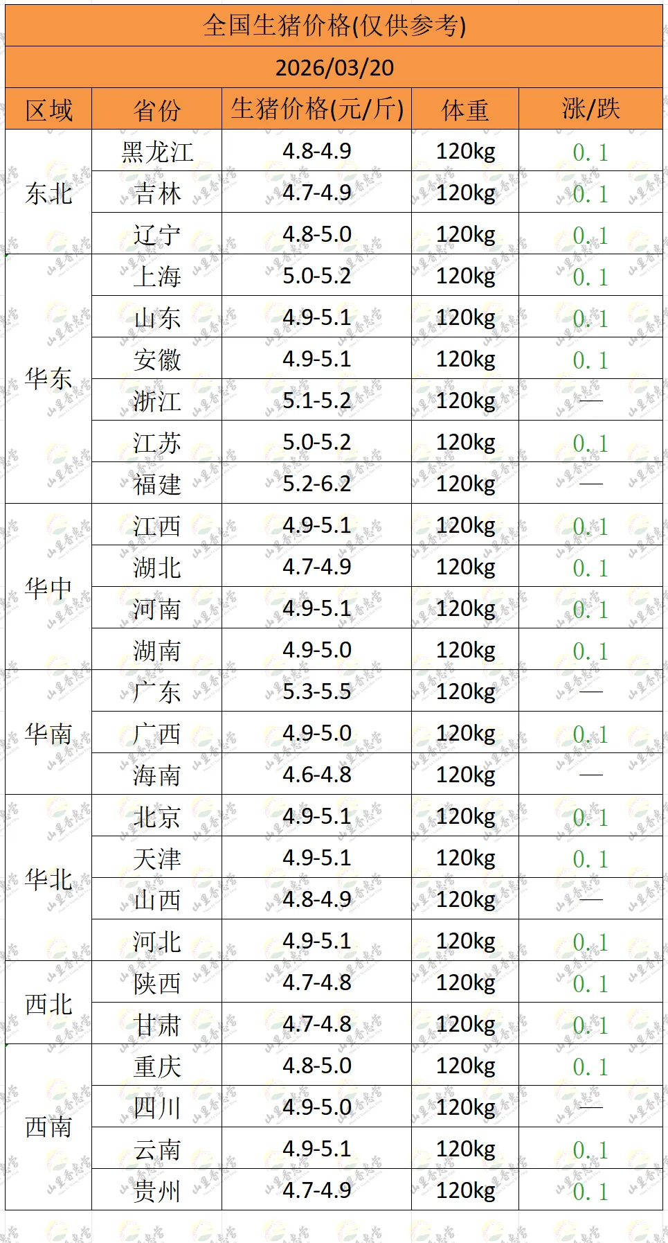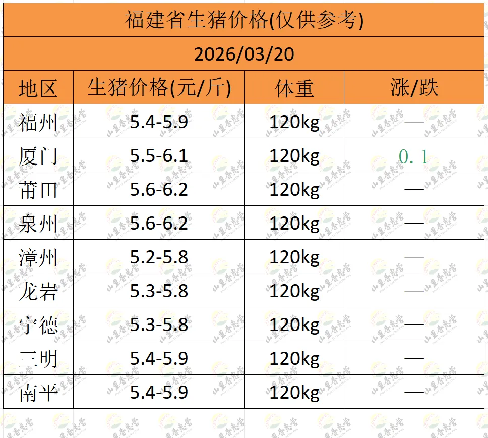 全国各地明日猪价(2026.03.20)-山里香惠营