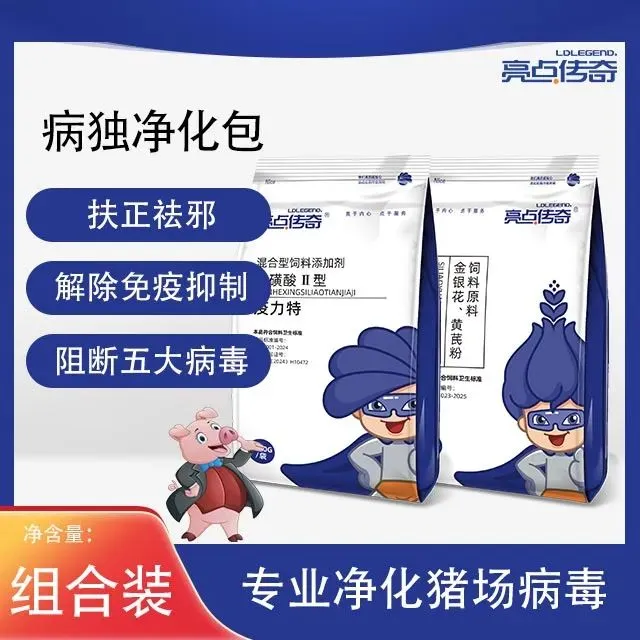 ?《病毒净?化包》十几年经久不衰,靠的就是回头客!特异性针对5大毒病?猪瘟、蓝耳、圆环、伪狂犬、口蹄疫,非特性异?提高机体疫免?力。减少猪?体内的野毒,提高机?体免疫力?!