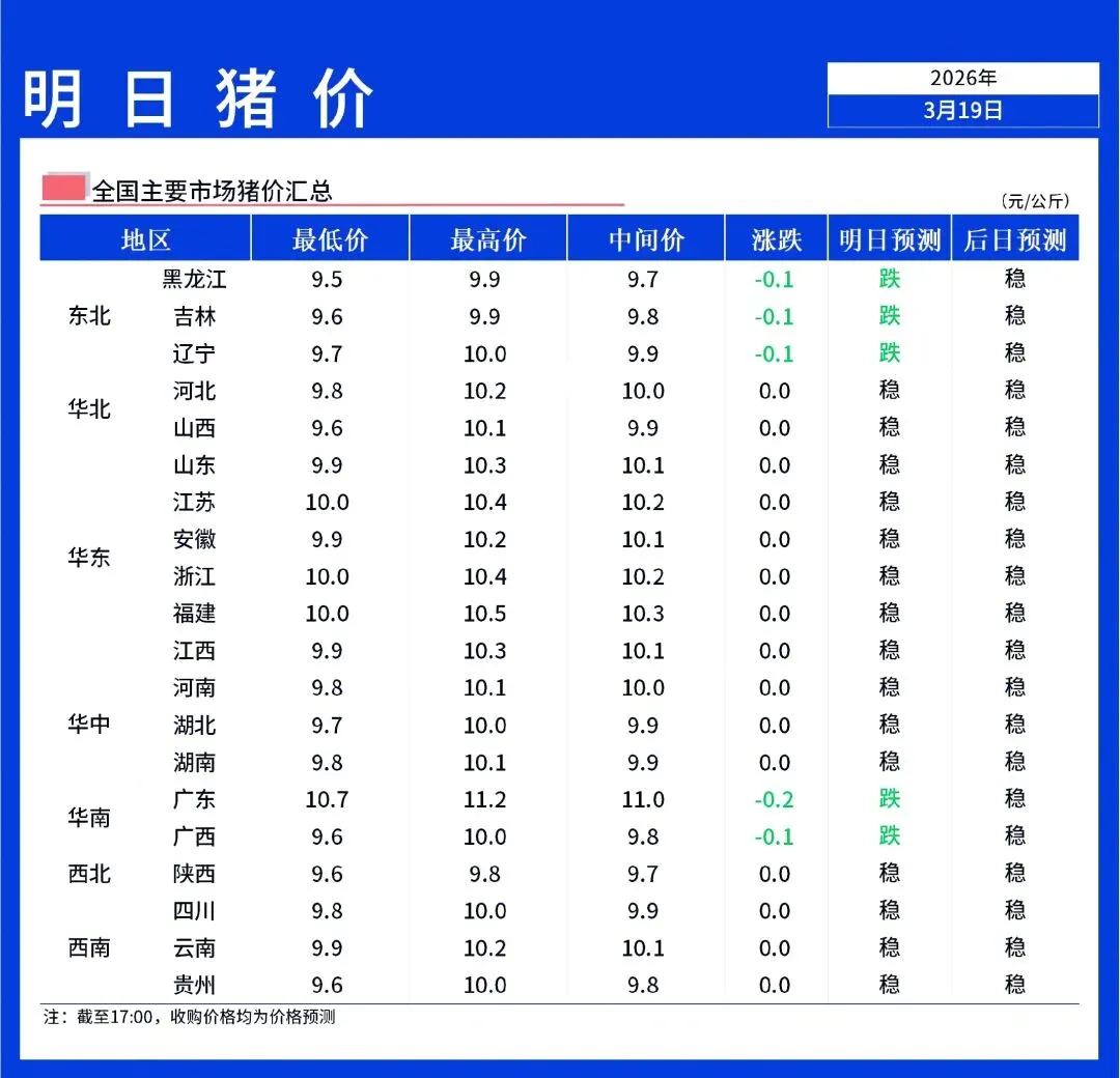 【明天猪价】3月20日全国猪价稳中偏弱!