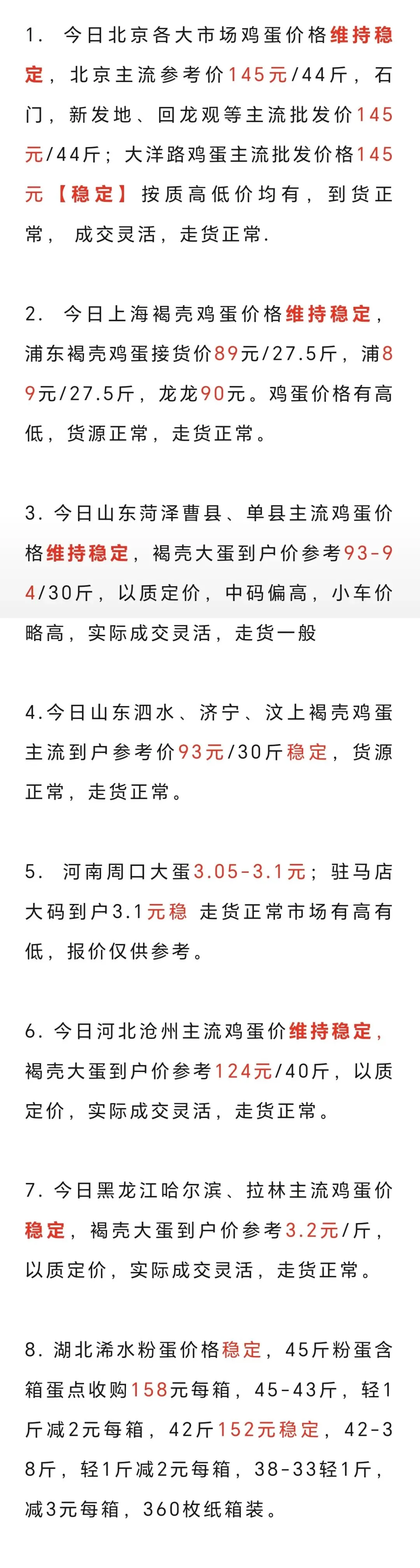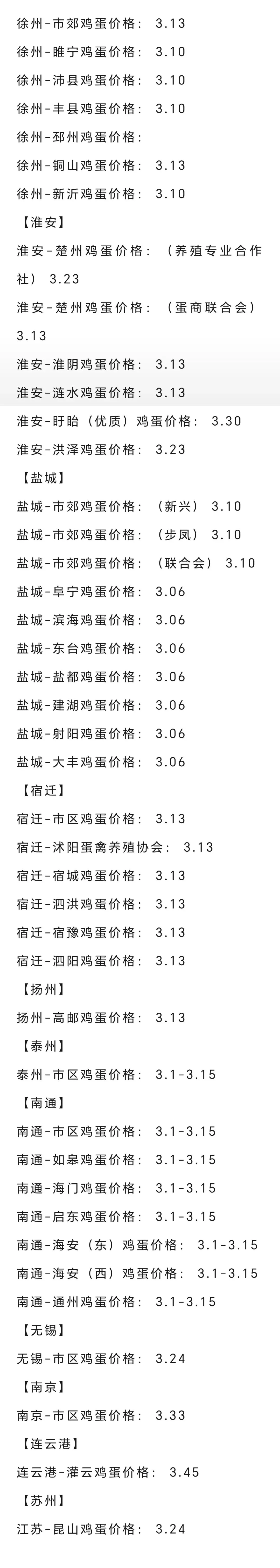 2026年3月20日各地鸡蛋价格 养羊网 2026-03-20 2026年3月20日各地鸡蛋价格 养羊网 2026-03-20 上一篇:2026.3.20全国猪价行情,仅供参考 下一篇:2026年3月20日 全国猪价 您可能还会对下面的文章感兴趣111: 相关文章 近期价格更新!!! 【油价暴跌、猪价变天】:92号汽油每升跌1.72元后大反转?下次调价3月9日:92、95号汽油 近期价格更新!!! 2025年4月13日全国各地生猪价格信息