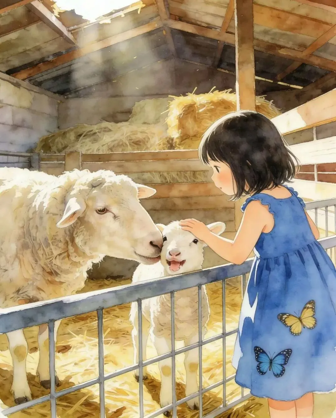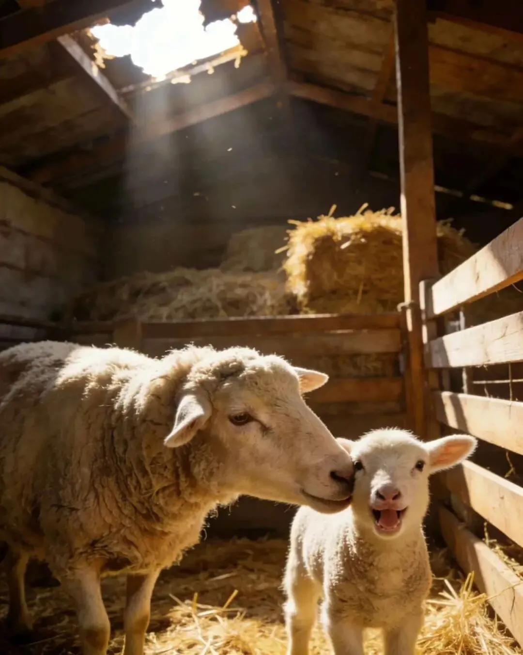 “咩——”我试着发出声音,四条细腿在干草堆上打滑。世界在我眼前晃动,所有东西都带着一圈毛茸茸的光晕。