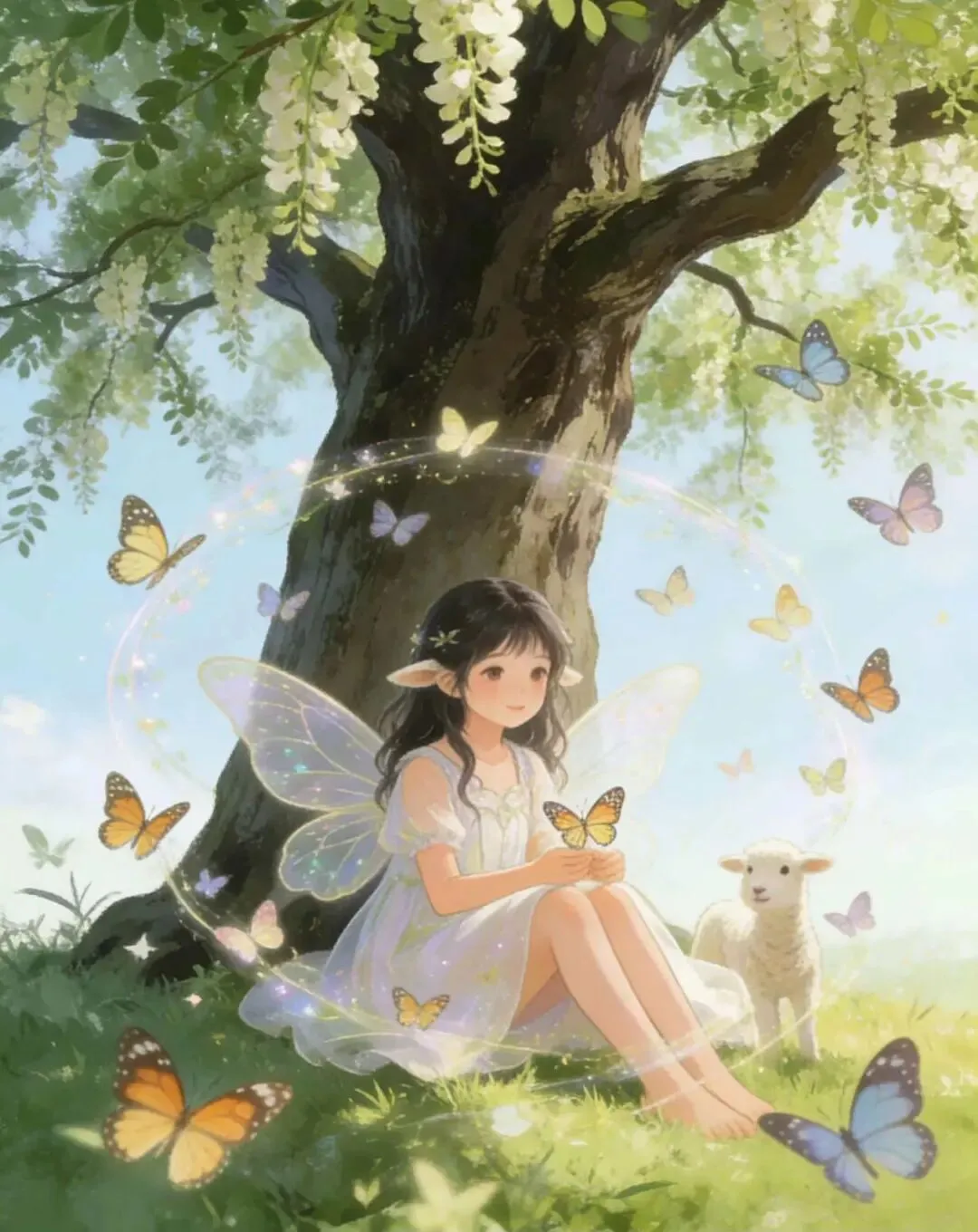 “你看,它们认得你。”她把下巴抵在豁豁嘴毛茸茸的头顶,“因为你也是蝴蝶变的。”