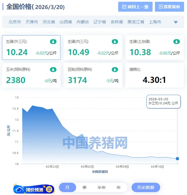 2026年3月20日猪价分析:延续跌势,底部震荡,产能去化持续