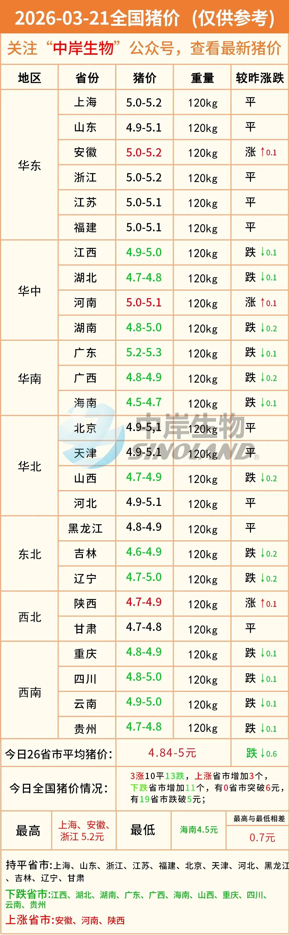 明日猪价|2026-03-21全国最新猪价(猪价已更新!) 养羊网 2026-03-20 明日猪价|2026-03-21全国最新猪价(猪价已更新!)营销中心丨0731-83806009技术服务丨0731-83806019 养羊网 2026-03-20 上一篇:【明日猪价】3月21日猪价有稳有降 下一篇:在英德水泥厂光伏板下养羊的祁阿叔,如何让自然草饲羊卖出 1.6 倍的好价钱? 您可能还会对下面的文章感兴趣111: 相关文章 2月11日宁夏鸡蛋价格参考 近期价格更新!!! 近期价格更新!!! 常见山羊的种类与区别