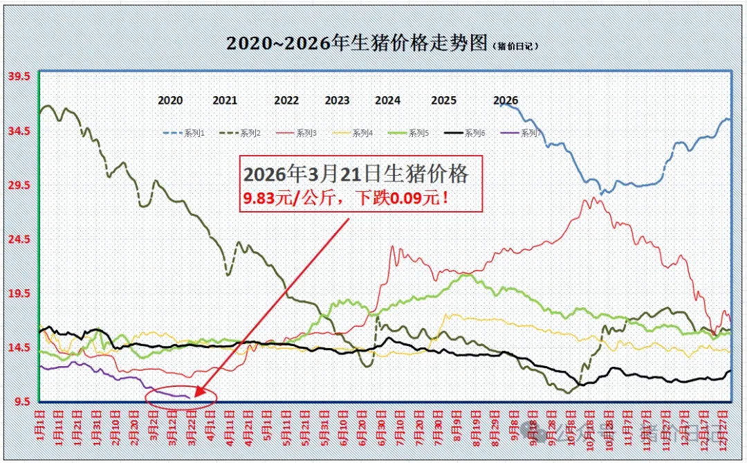 下跌“一片绿”!附:3月21日猪价预计,3月21日,外三元生猪出栏均价在9.83元/公斤,后市关注生猪购销节奏的变化!
