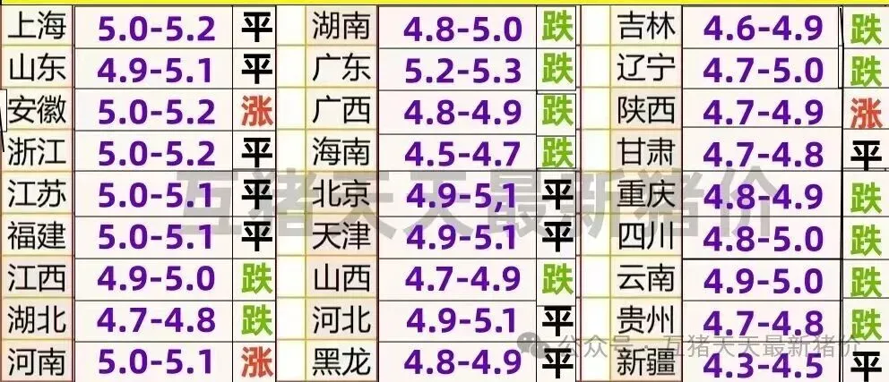 最新全国猪价: