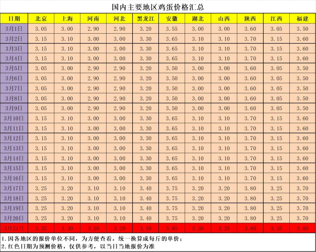 ? ? 鸡蛋预测价格仅供参考,实际价格以当地当日的报价为准。