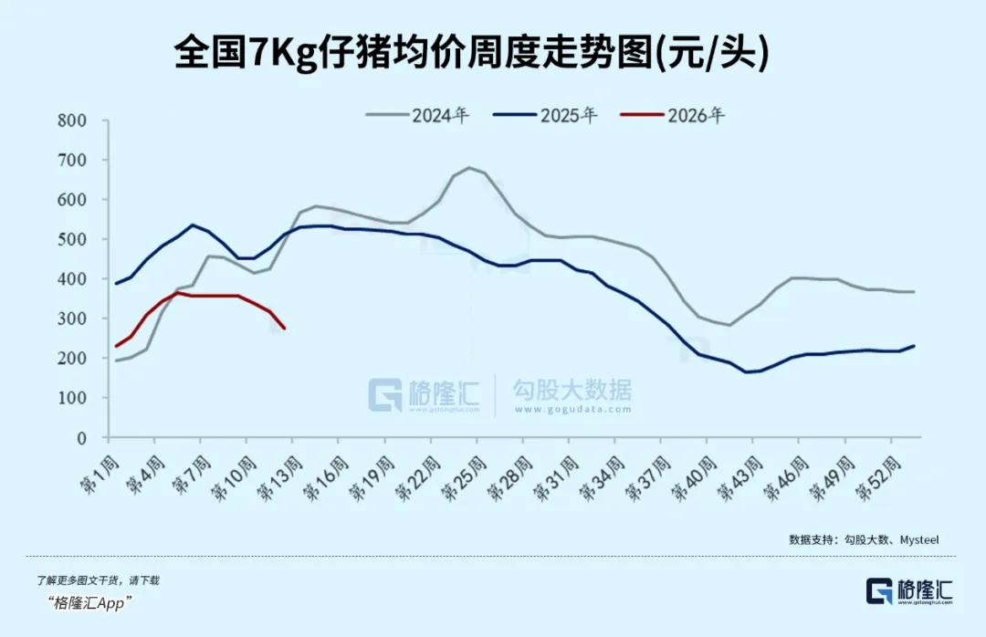供需的持续失衡和行业的持续亏损之下,市场悲观情绪正在逐渐传导,近期,仔猪价格也出现下跌,显示出养殖户的补栏意愿也正在下降。