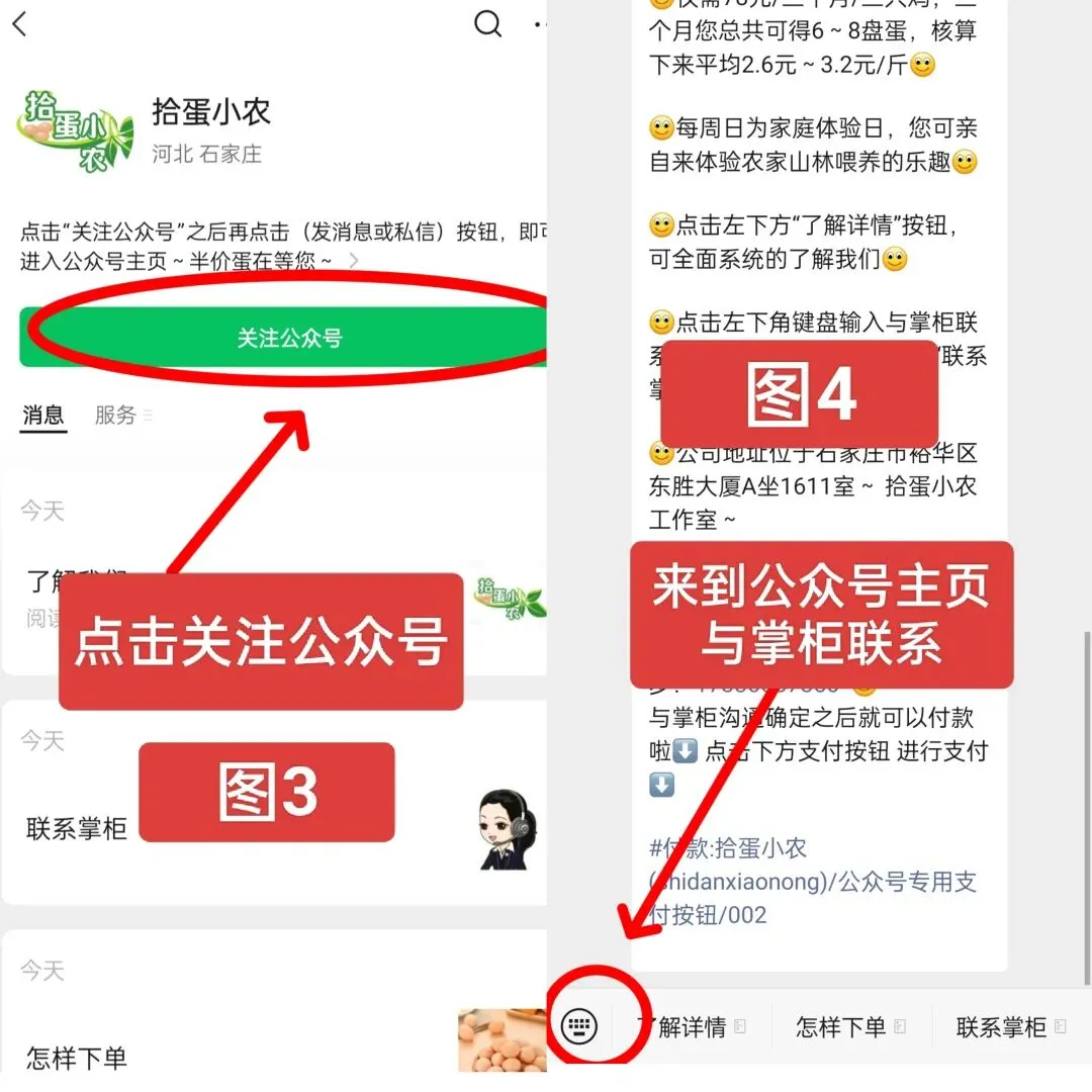 仅需78元,就能养3只鸡/三个月/? 您共得6~8盘鸡蛋,核算下来平均每斤鸡蛋2.6元~3.2元,每月给您寄2~3盘(包邮)够正常一家三四口的量,纯山林散养虫谷蛋超划算~详细情况请看下文中“详情介绍” 可回到公众号主页与掌柜咨询~(该页面底部有回到公众号主页的引导示例图)