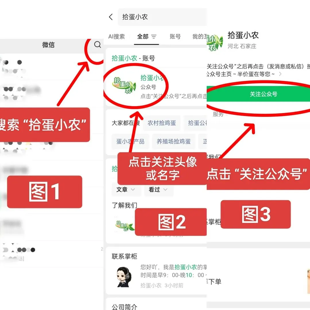 通过搜索“拾蛋小农”进入公众号的…?