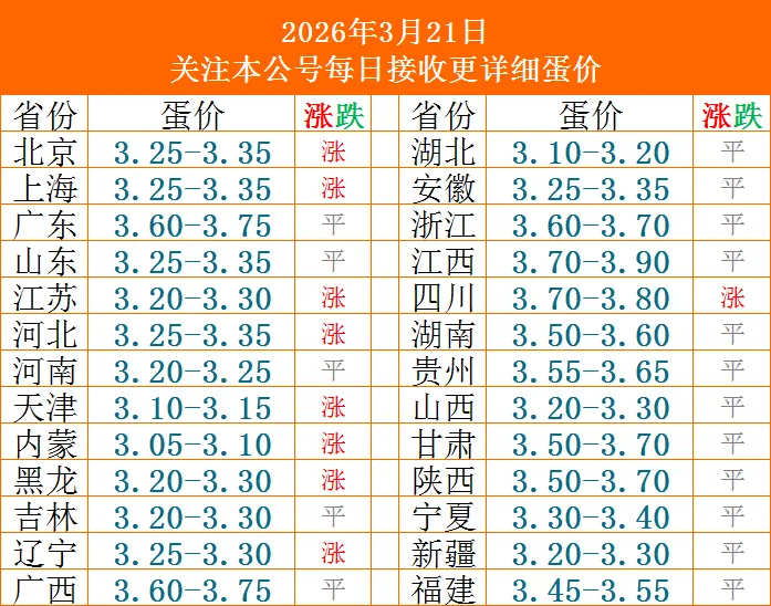下图为3月21日全国鸡蛋价格表?仅供参考!