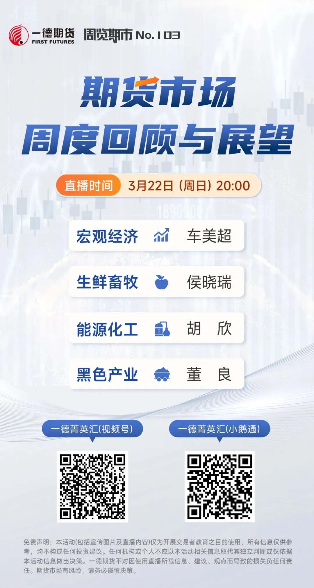 由一德期货各投研团队倾力打造的直播栏目周览期市,2026年3月22日(周日)20:00线上与大家不见不散!