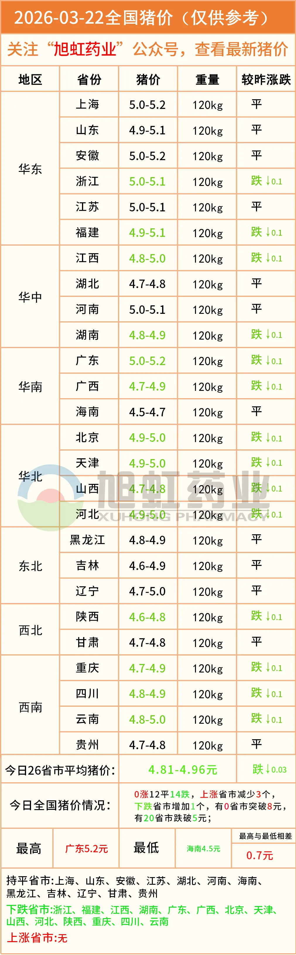 明日猪价——2026年03月22全国生猪价格! 养羊网 2026-03-21 明日猪价——2026年03月22全国生猪价格! 养羊网 2026-03-21 上一篇:春秋两季养羊疫苗接种时间、作用大全! 下一篇:3月21日最新消息:猪价太吓人了#猪价 您可能还会对下面的文章感兴趣111: 相关文章 近期价格更新!!! 2025年4月13日全国各地生猪价格信息 2026年01月23日早间鸡蛋价格参考价 十月份省钱小妙招