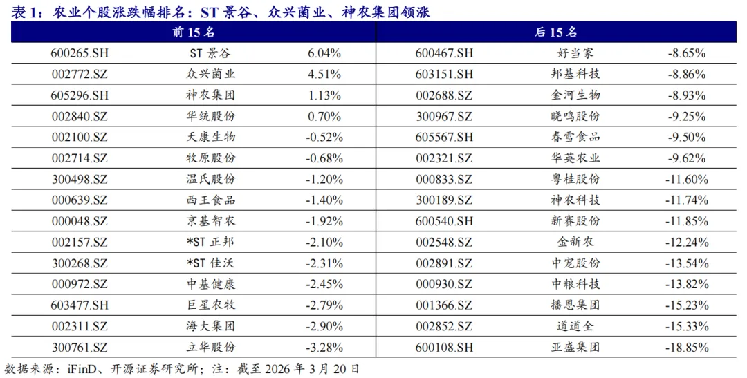 本周市场表现(3.16-3.20):农业板块跑输大盘1.12个百分点