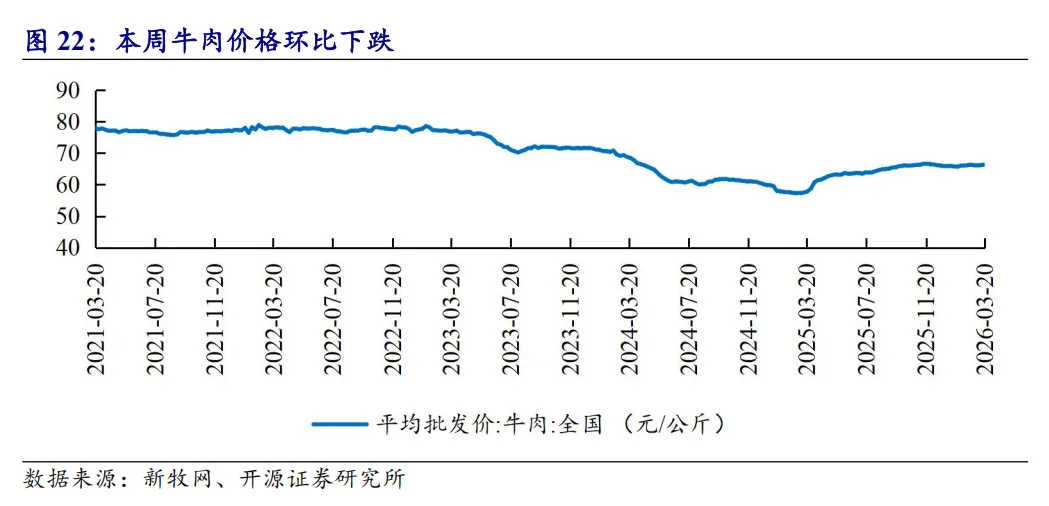 能繁母猪存栏边际回升,仔猪端显示补栏需求偏弱。据涌益数据,2026年1月全国能繁母猪存栏环比+0.65%,2月环比+0.73%,能繁端连续两月环比正增长,未见持续去化迹象。淘汰端,高胎淘母折扣修复,指向淘母相对改善,以结构性更新为主。仔猪方面,仔猪价格快速下行补栏需求偏弱,对后续产能扩张形成约束。截至2026年3月17日,7kg仔猪价格294元/头,周环比-9.82%、同比-43.13%,商品猪价格持续探底背景下,外购补栏积极性明显下降。利润结构上,截至2026年3月19日销售仔猪头均利润仍为+14元/头,仔猪利润已显著压缩,若后续继续下探并转负,或将触发母猪端的结构性去化。重点新闻: