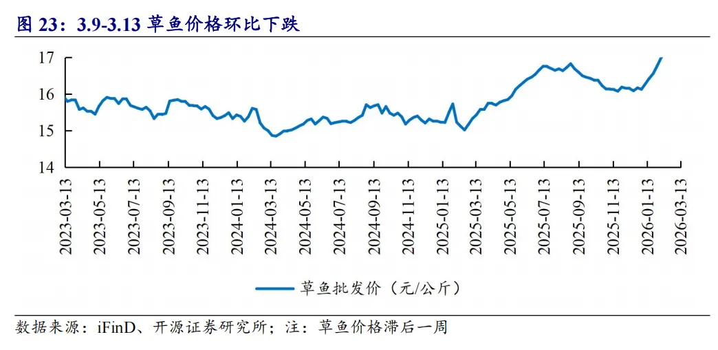 本周价格跟踪(3.16-3.20):本周白羽鸡、鲈鱼等农产品价格环比上涨