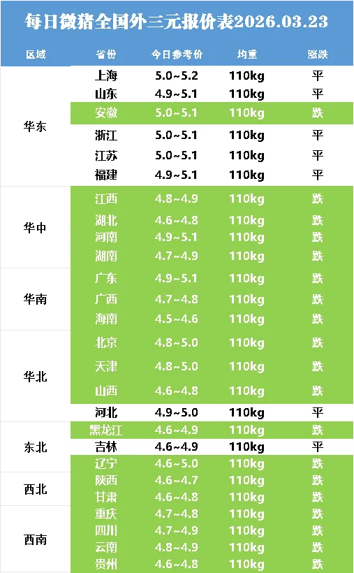 明日最新猪价2026.03.23点击蓝字关注 猪价不错过