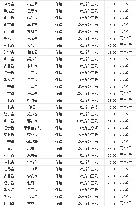 3、当日外三元生猪均价低位企稳,10-15公斤仔猪报价持续走低,养殖端亏损加剧。