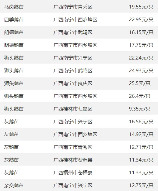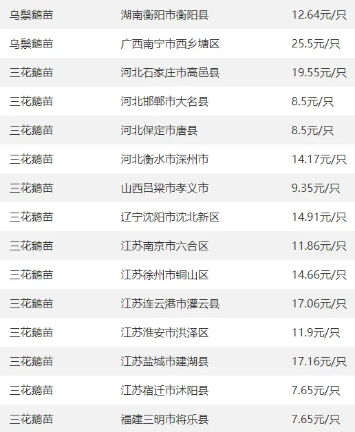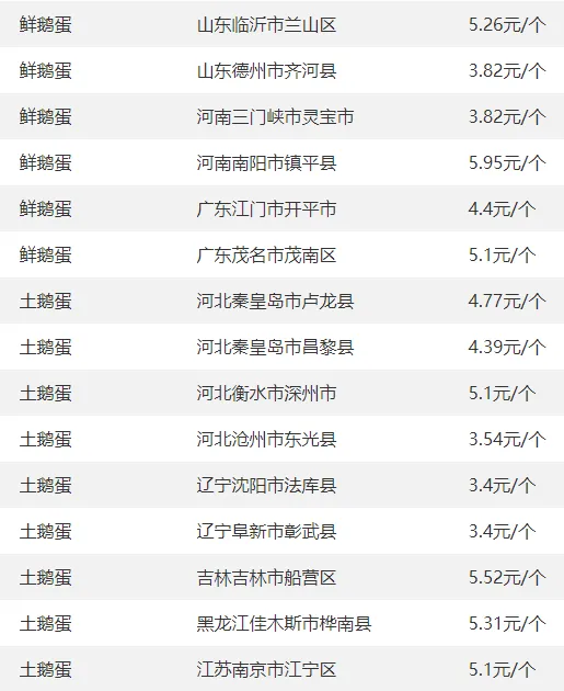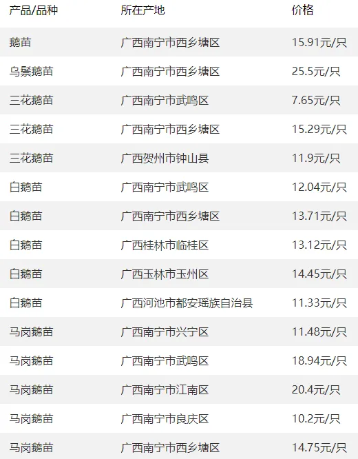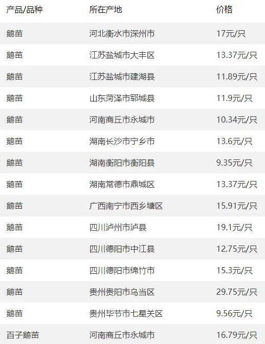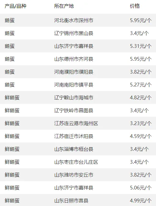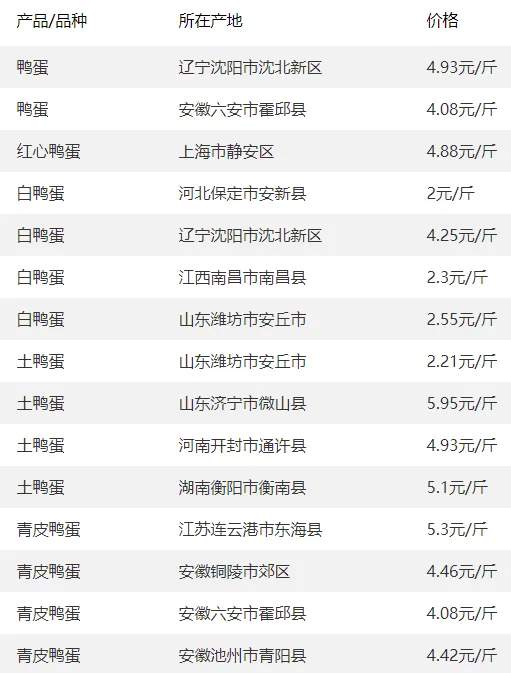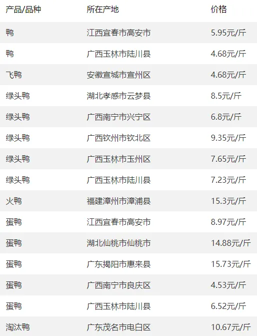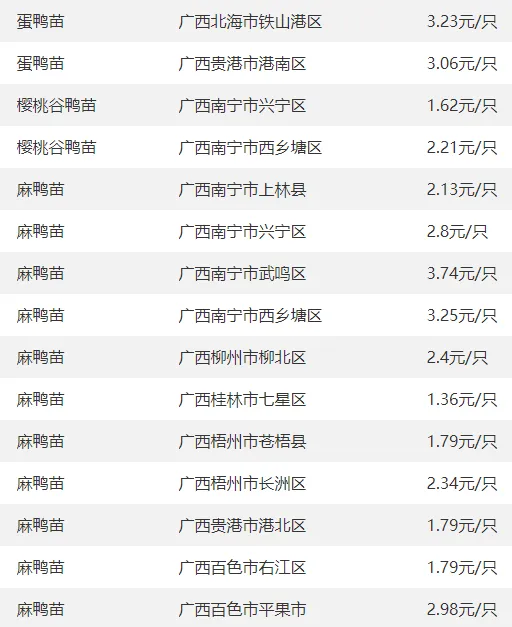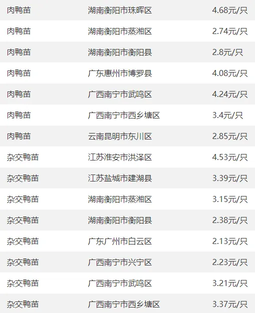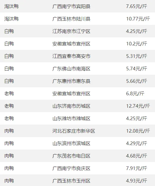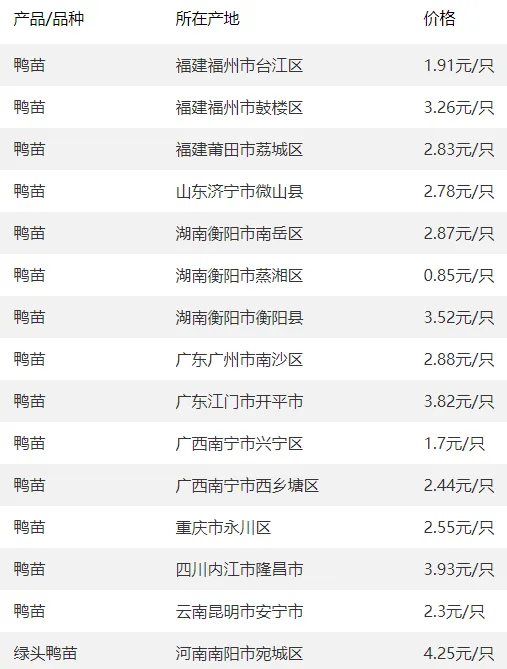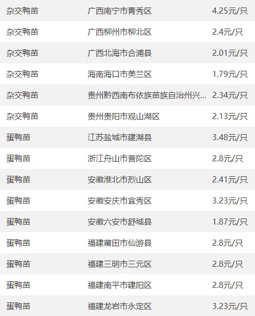活鸭、鸭苗、鸭蛋、鹅苗等今日报价参考